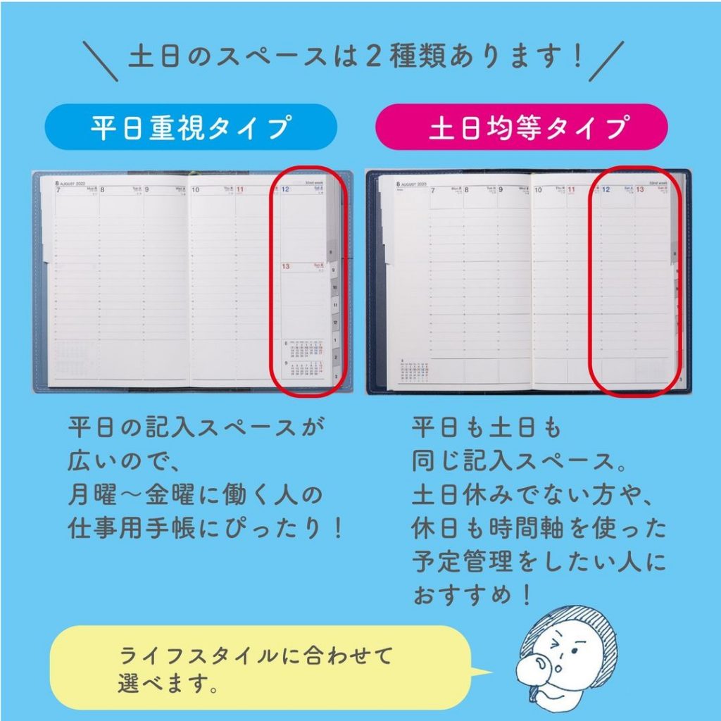 でも私もこの勤務形態ですが、仕事用の手帳は土日均等タイプのバーティカル式を使っています…。