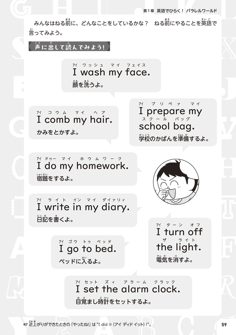 読み進めるうちに、自然と英語表現にふれられて、「話してみたい!」気持ちがぐっと広がるはず!