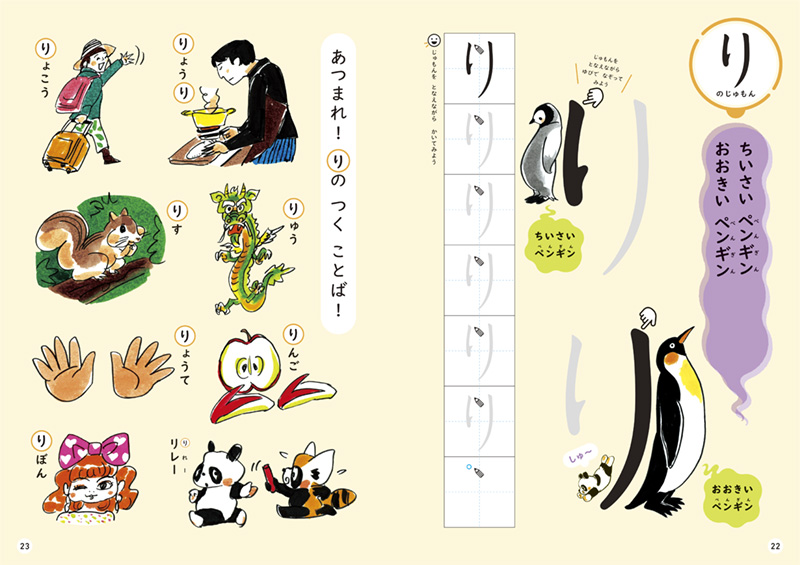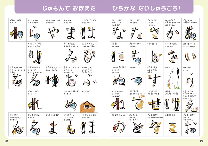 ただ楽しいだけではありません。じゅもんを唱えながらひらがなを書くことで、初めての練習でも筆順通りに、きれいな字形を自然に覚えられます。