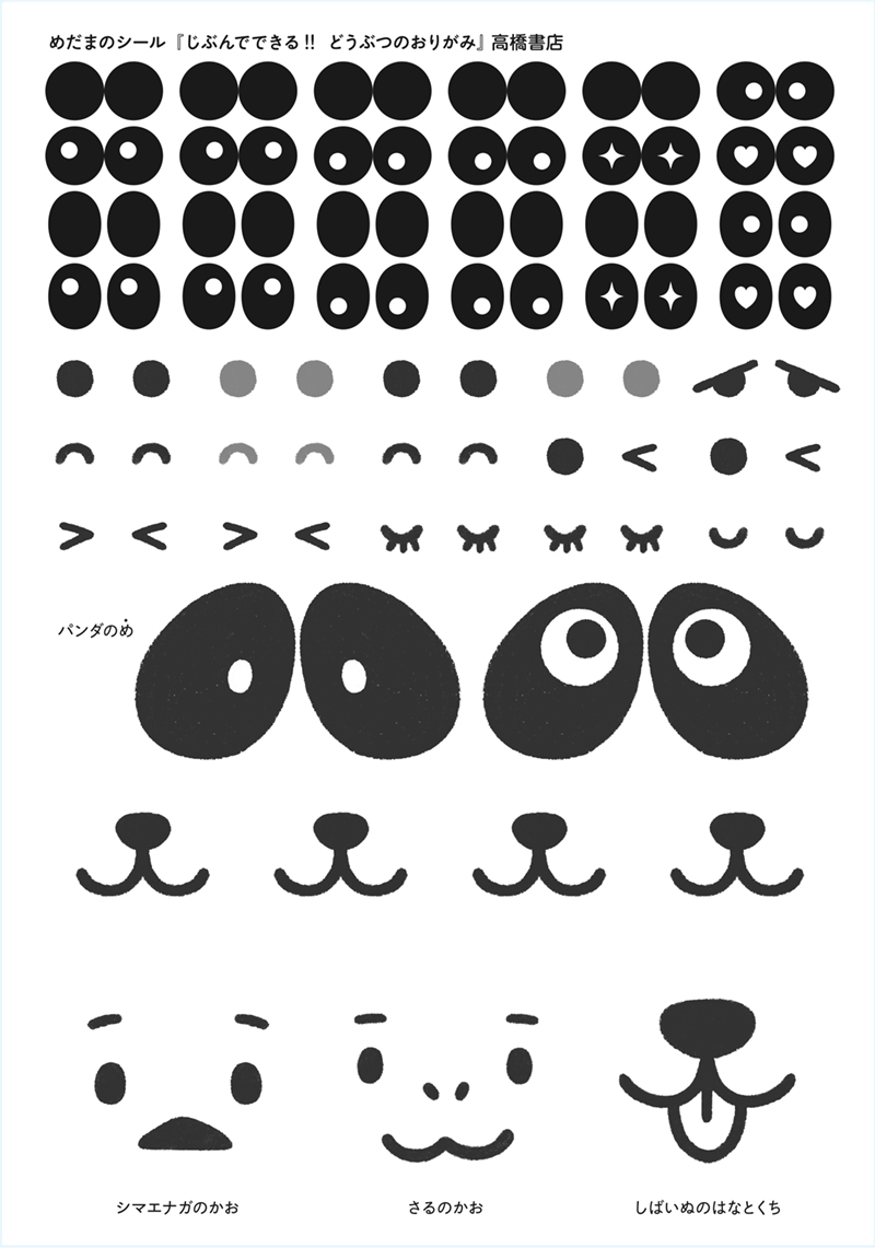 顔の仕上げなどに使える「シール」を収録。まだ顔をうまく描けない……というお子さんでも、気軽に楽しく仕上げることができます。