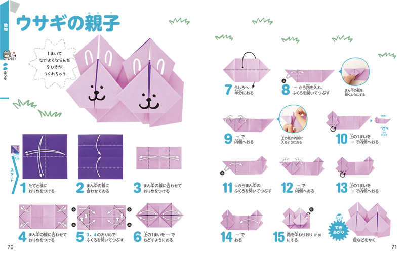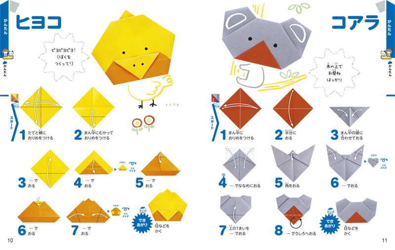 本著者の作品は、かんたんでありながら、ビジュアルが洗練されています。よりわかりやすく、魅力的に紹介できるよう、折り図、レイアウト、イラスト、構成……たくさんの工夫をこらしました。