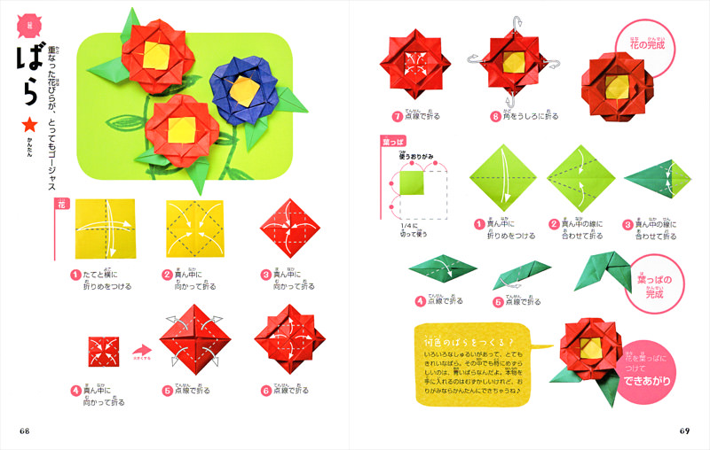 おりがみって意外と難しい! そんな悩みを解決するために、本書ではつくり方をすべて写真で解説。点線や矢印も大きく見やすくしているので、子どもでも簡単につくれます。
