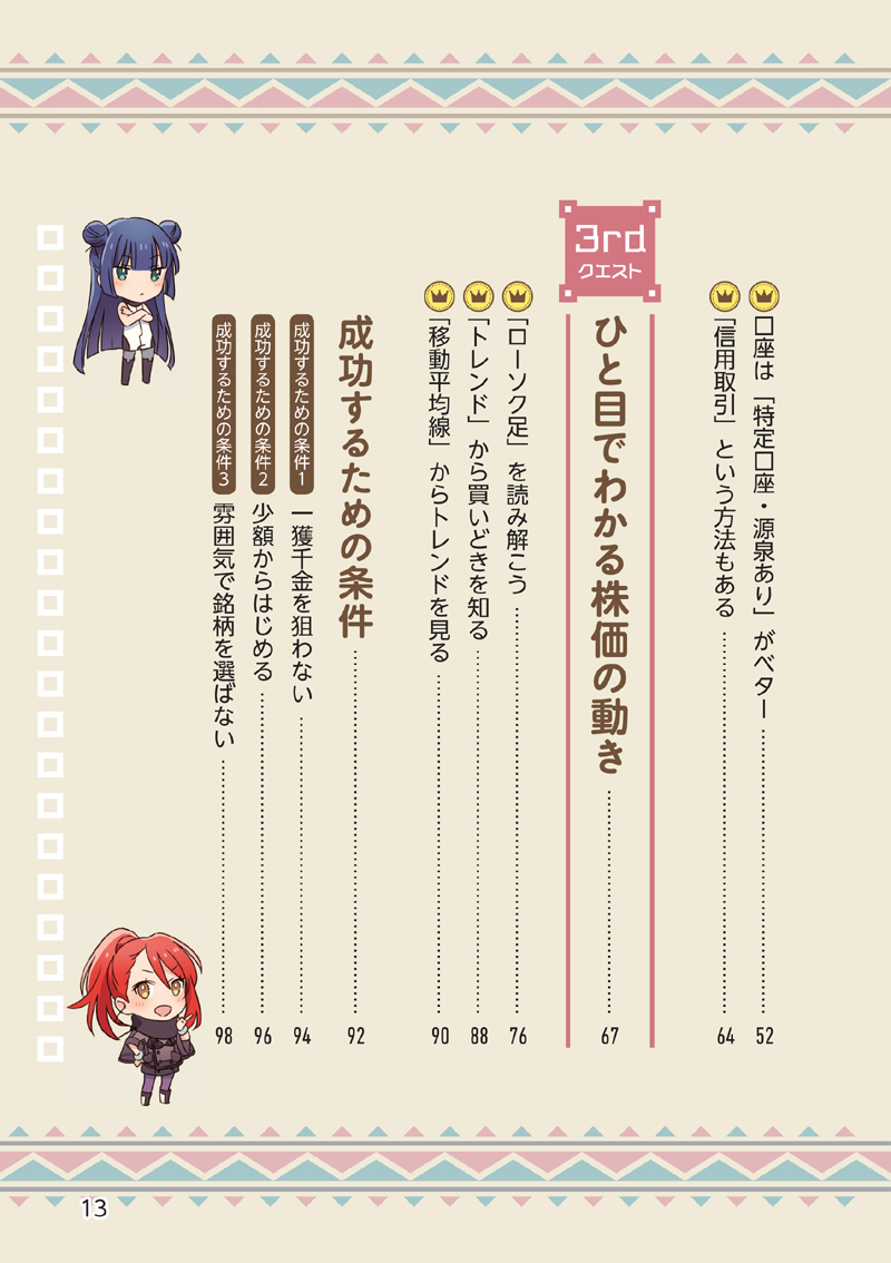 投資にチンプンカンプンの主人公が、株で稼ごうと一念発起して投資の世界へ。3人の女の子とともに成功するためのノウハウを学んでいきます。