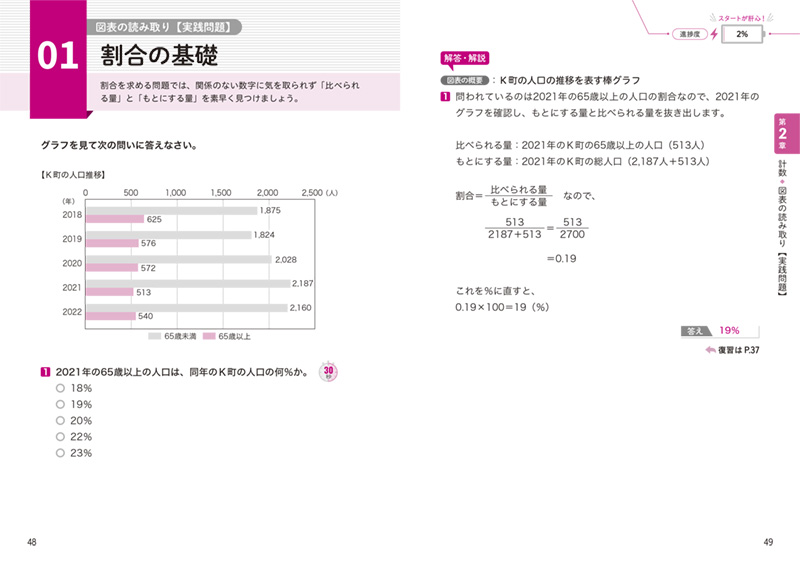 頻出分野の図表の読み取り問題の式の立て方から時短テクまで掲載。