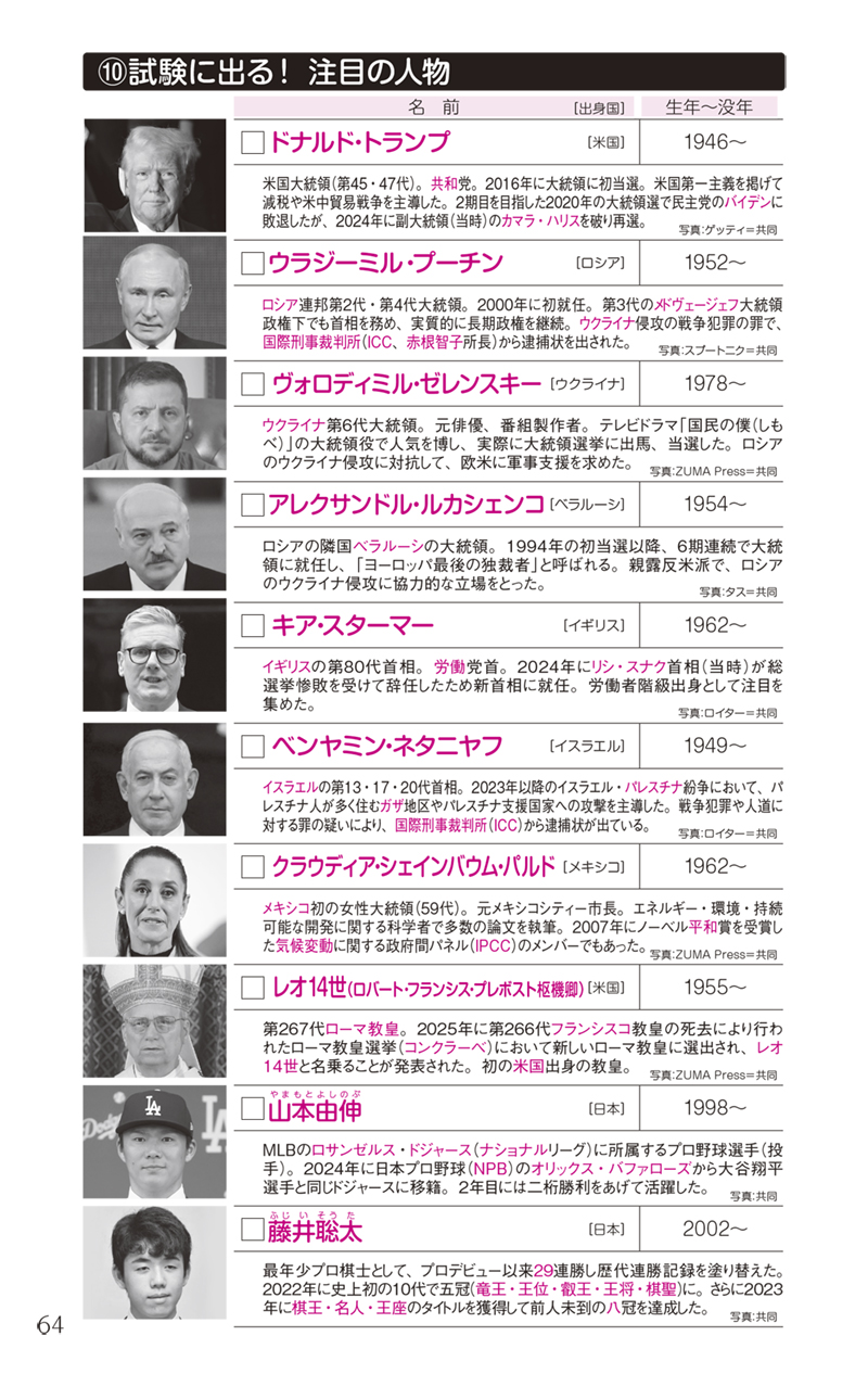 新型コロナウイルス感染症/過去のパンデミック・流行病/国内政治/歴代首相/憲法・法令・条約/平和安全法制/消費税/日本の省庁/少子高齢化/再生医療/宇宙開発/日本の震災/原子力問題