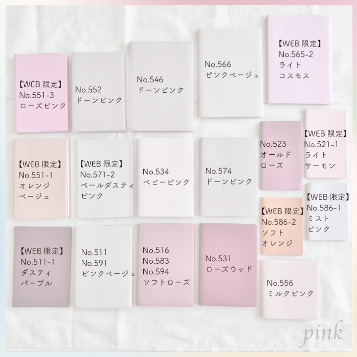 「これはピンク?ベージュ?」と分類しにくい色も多いので、ぜひ店頭で実物を見てみてください。