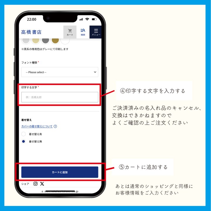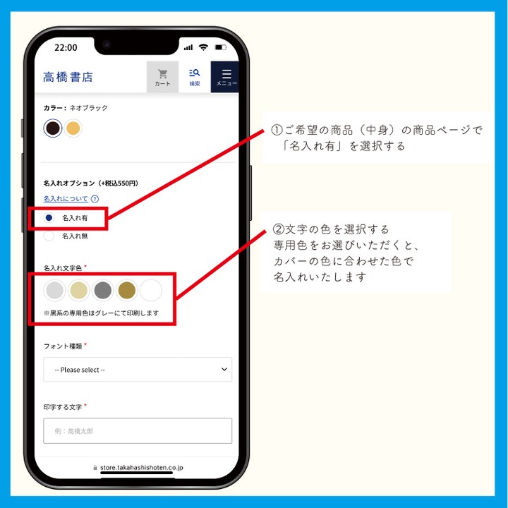 高橋書店公式オンラインショップでは、カバーへの名入れサービスを行っています。
