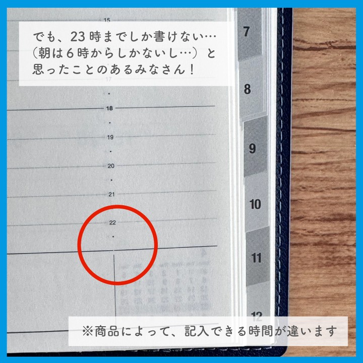 バーティカル式の上下の空いたスペースに、自分で時間を足して24時間分書いているという方のお話も聞くのですが、毎日のことだと少しめんどうですよね。