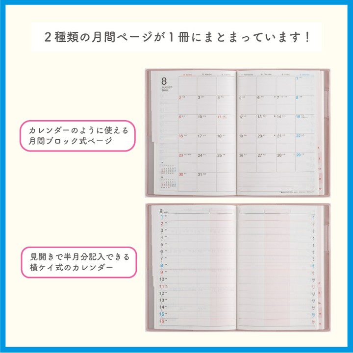 その名の通り、1冊で家族の予定を管理できる手帳です。