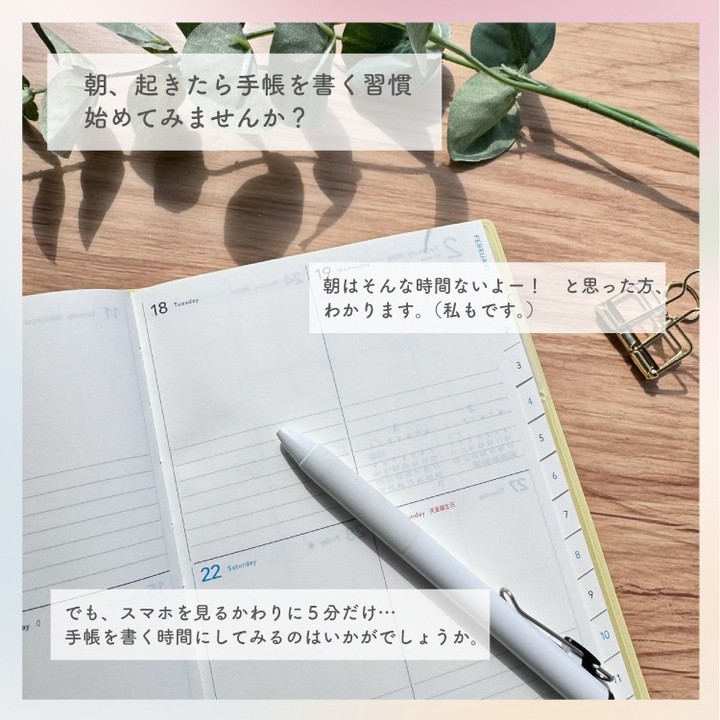 ぜひ、ほんの少し早起きしての手帳時間を試してみてくださいね。
