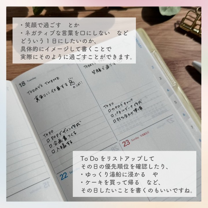 手帳に書き出すことで、より強く目的意識を持つことができるように思います。
