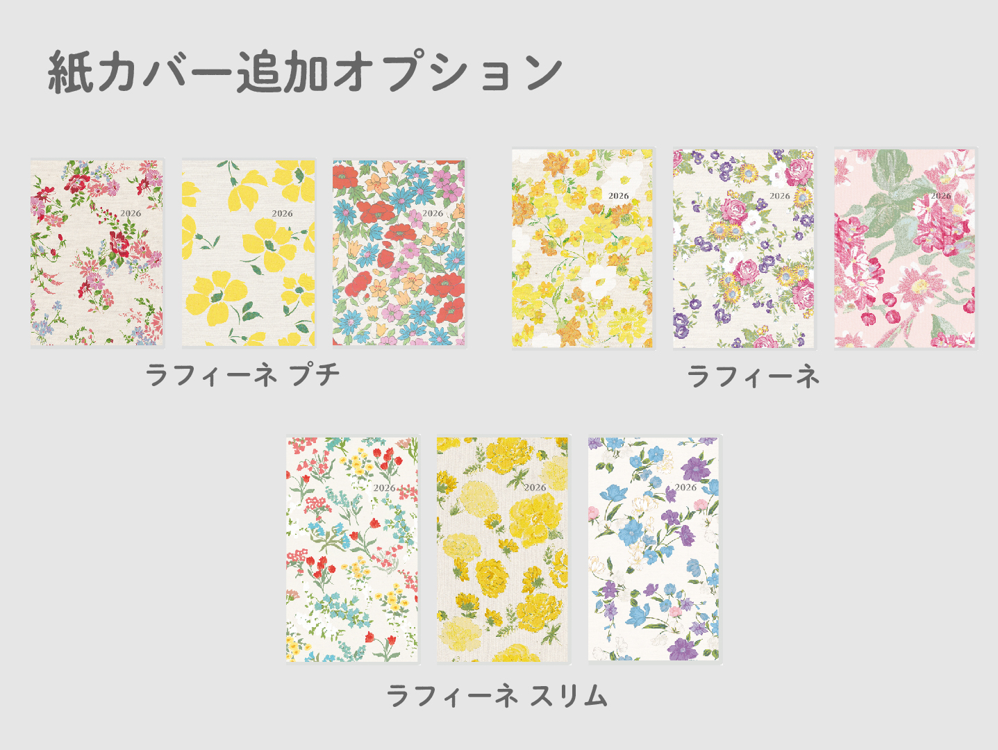 フランス語の‟raffiné”(上品な)が名前の由来。毎年変わる、アンティーク調の花柄カバーのマンスリー手帳。手帳初心者の方にもオススメです。2026年版では待望のB6サイズが新登場。